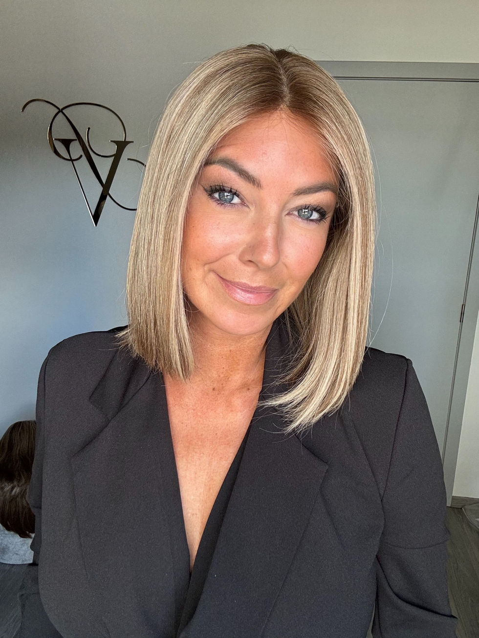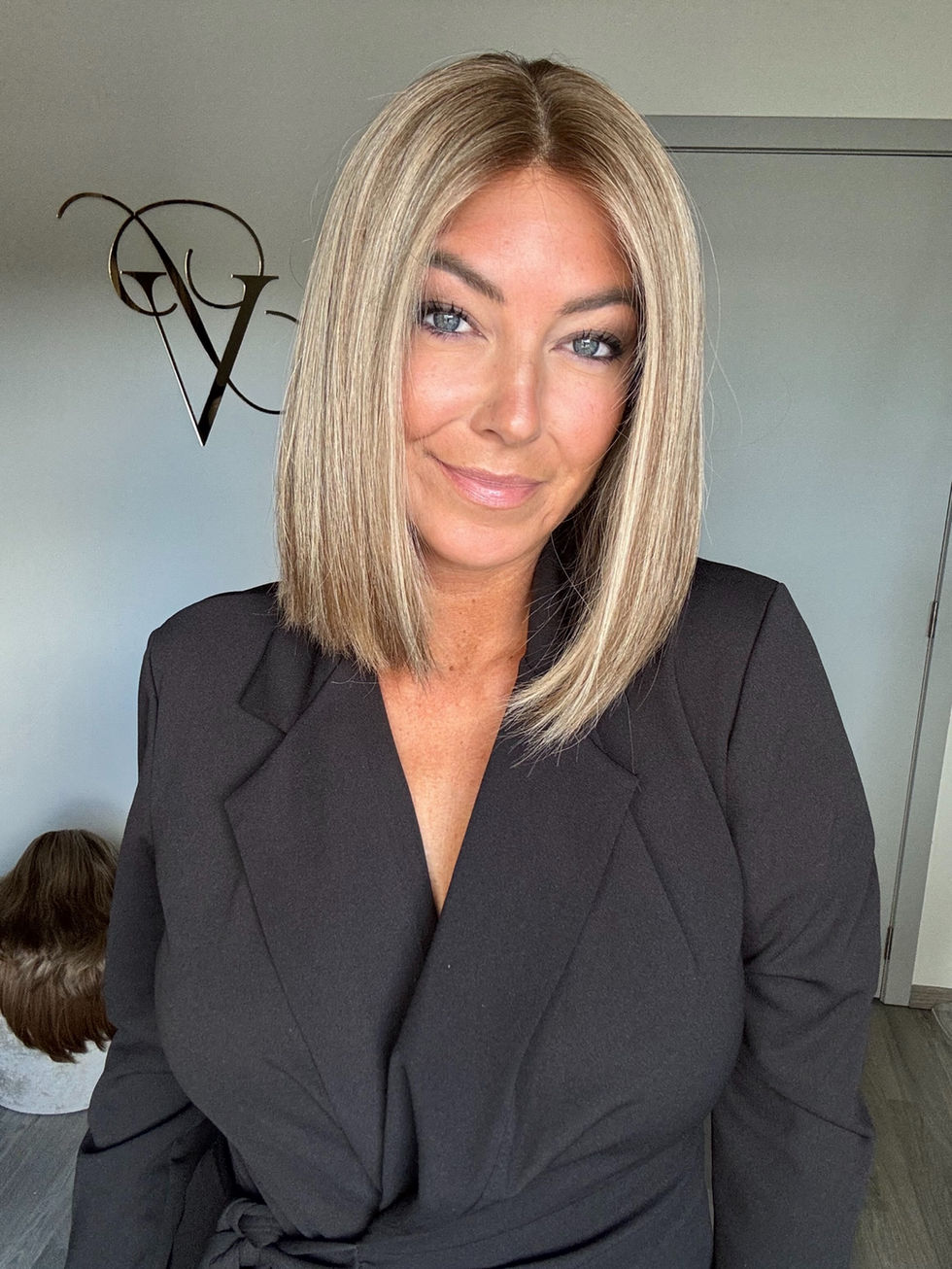 - Dimensional level 8 base balayage with level 9/10 highlights & soft rooted light hair in the front (can be ordered without the light front hairline)