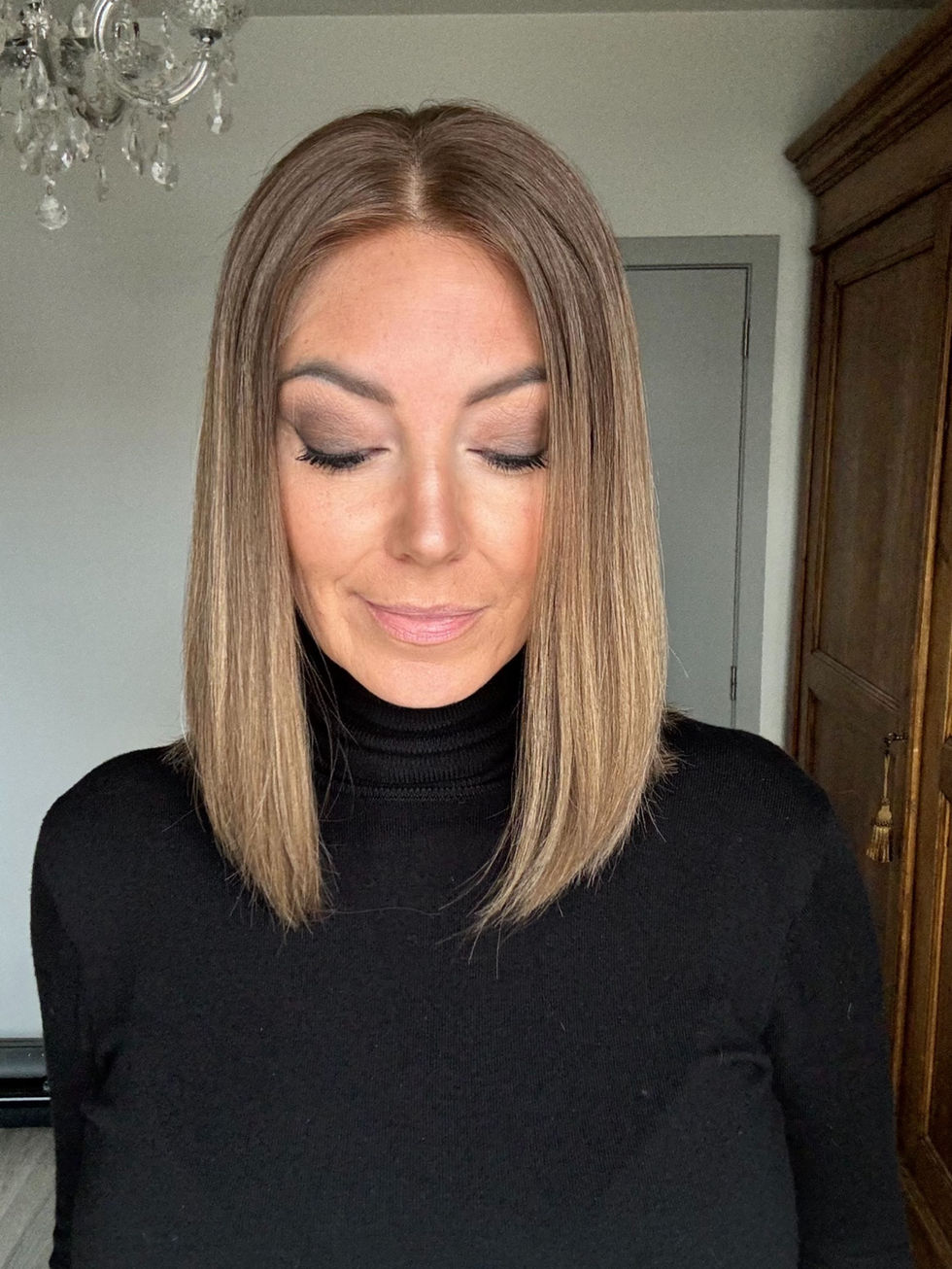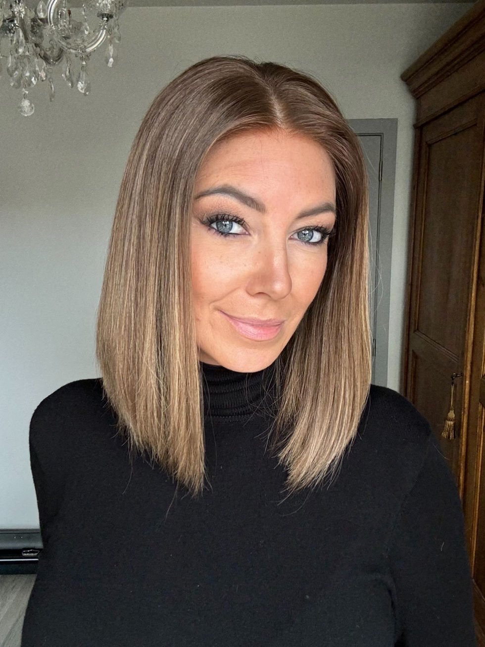 The part line can easily be concealed with a little powder if desired. Front hairline knots are kept light and hand-painted for a soft, natural look.