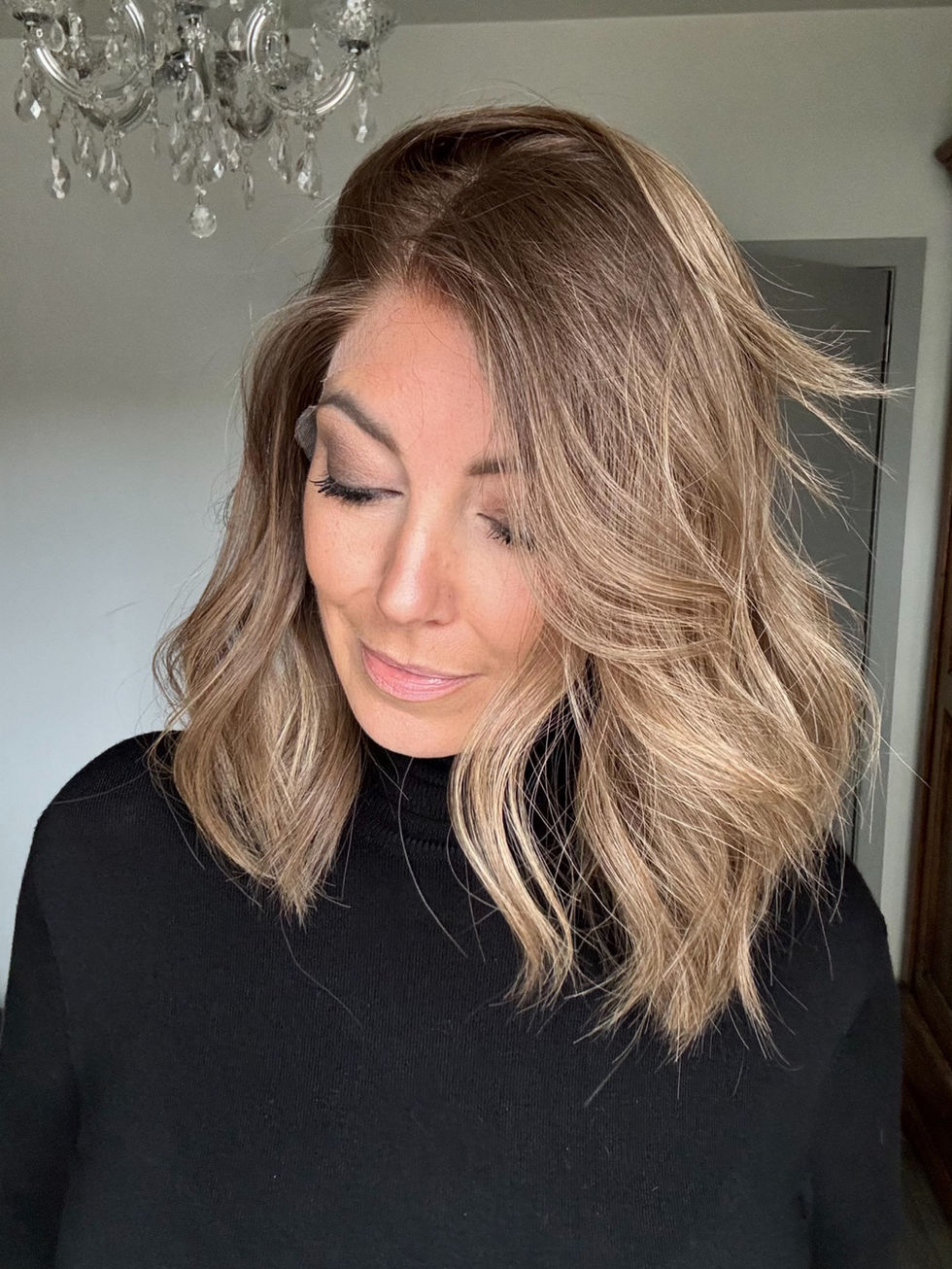 - Level 6 base balayage with level 8 neutral to ashy ends