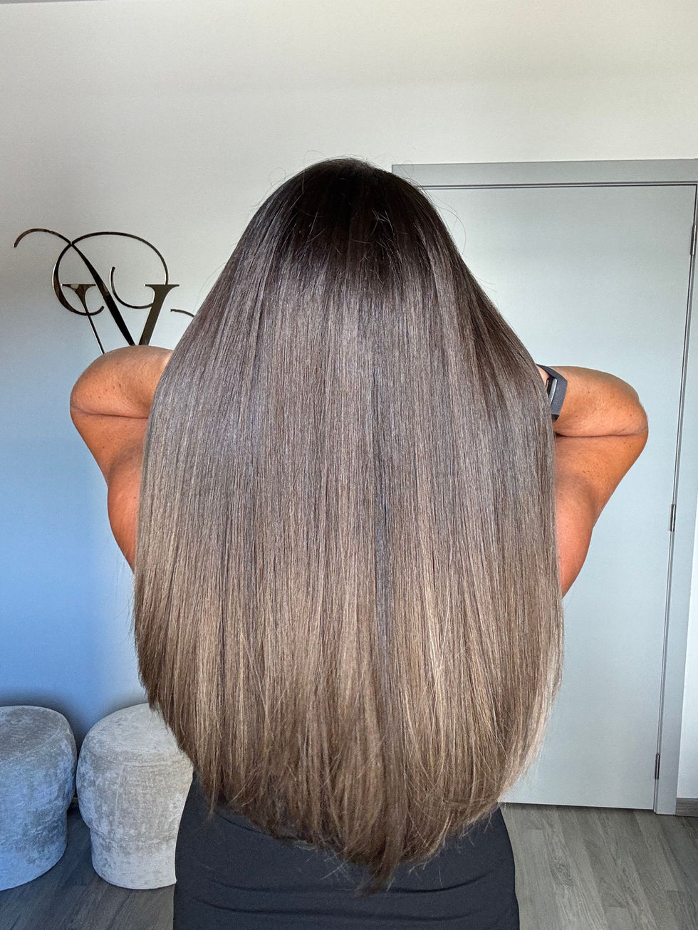 - Neutral/ashy level 5 base into a level 7/6 balayage
