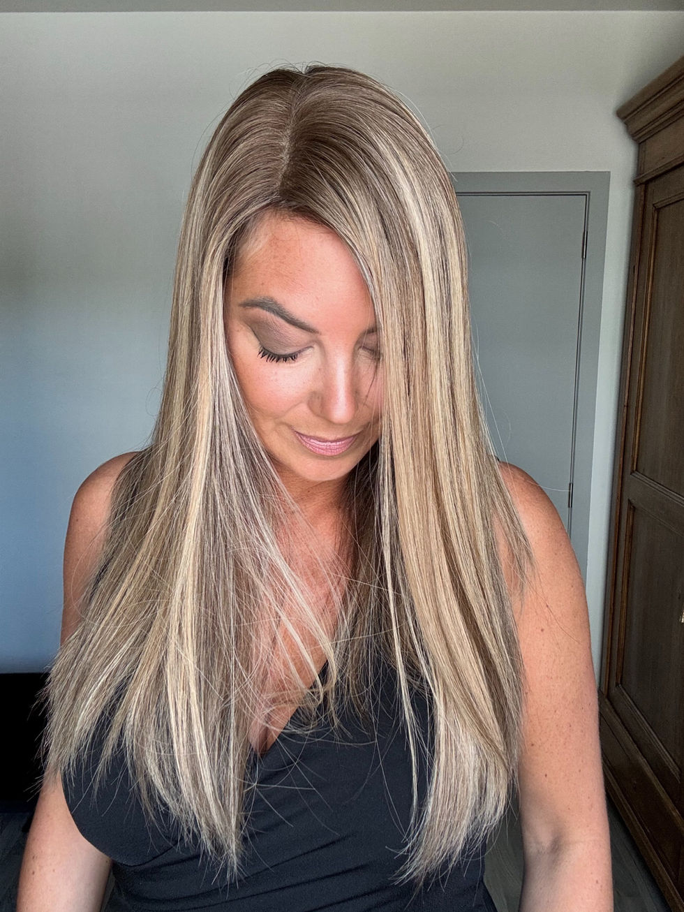 If you’ve tried a silk topper before but you’ve been frustrated with it not laying flat enough, not having enough natural hair to blend in with it or you simply don’t like how thick the rim is, this might be your go to.