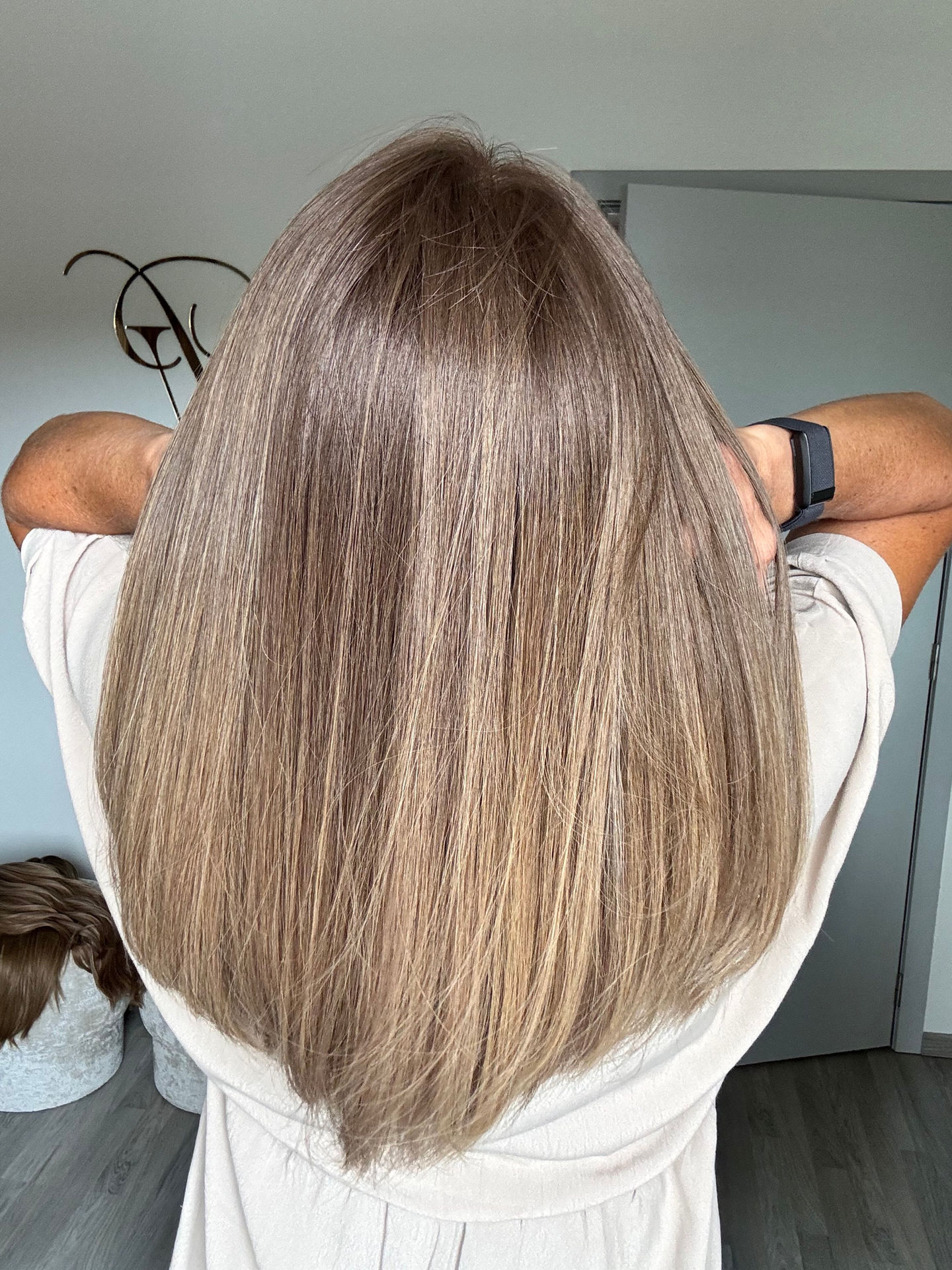- Level 6 base ombre/balayage with lighter level 8 neutral/ashy ends