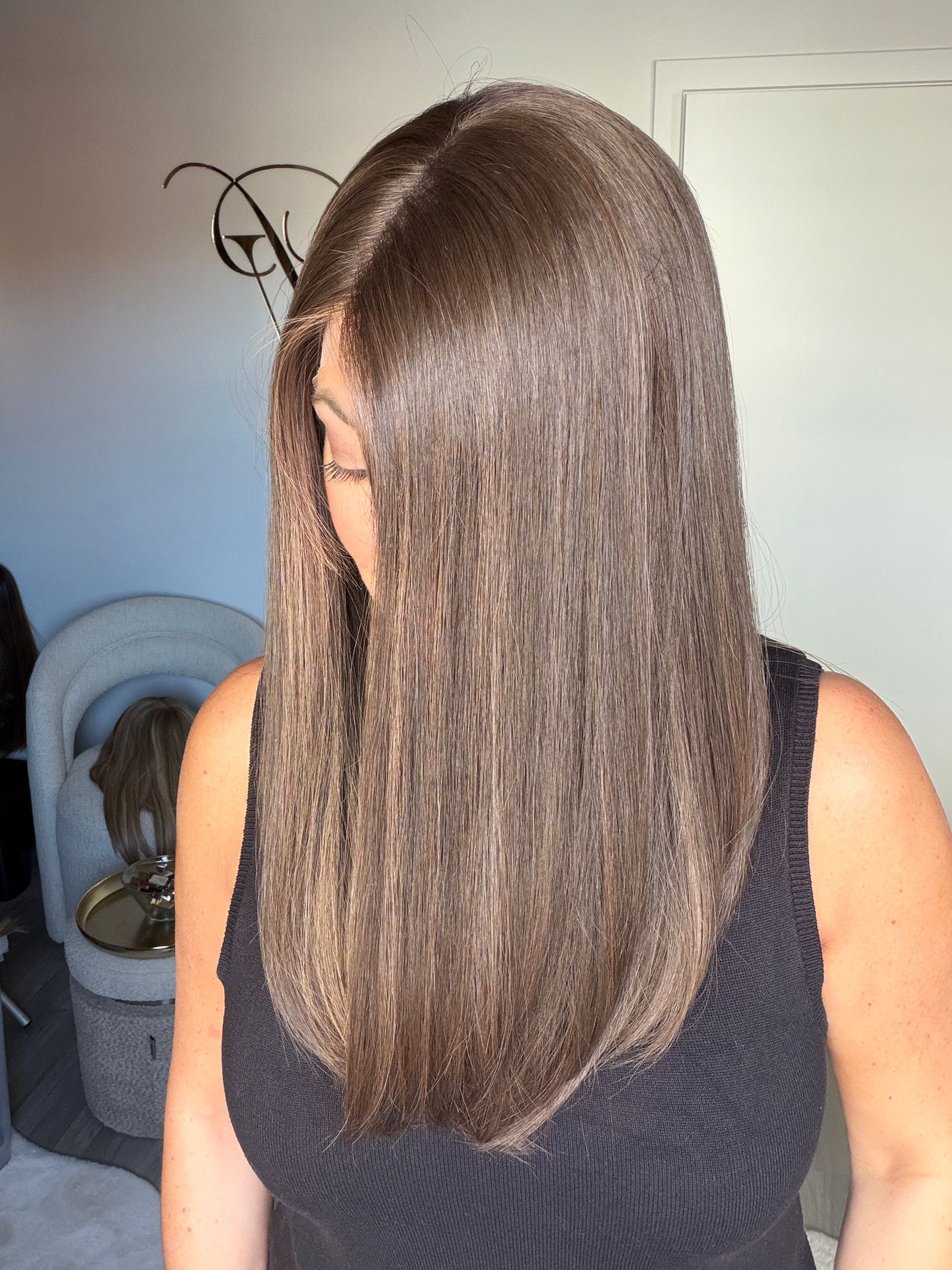 - Ash toned level 5/6 brunette with very subtle highlights